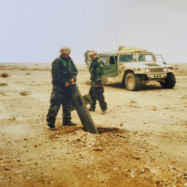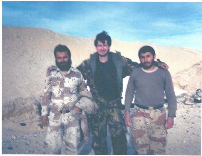 At the Iraqi border. These are two Egyptian army soldiers who let me interview fresh deserters from the Iraqi front. The ground war had yet to start, but a constant conga line of B-52s dropping 500-pound bombs on their bunkers. drove them to the other side.