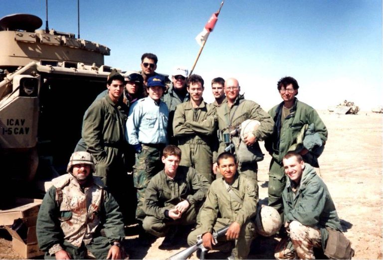 A Bradley Fighting vehicle races alongside the one I'm in as the 100-hour ground war gets underway in Iraq in 1991. Photo by Pulitzer Prize-winning war correspondent Mark Fritz.