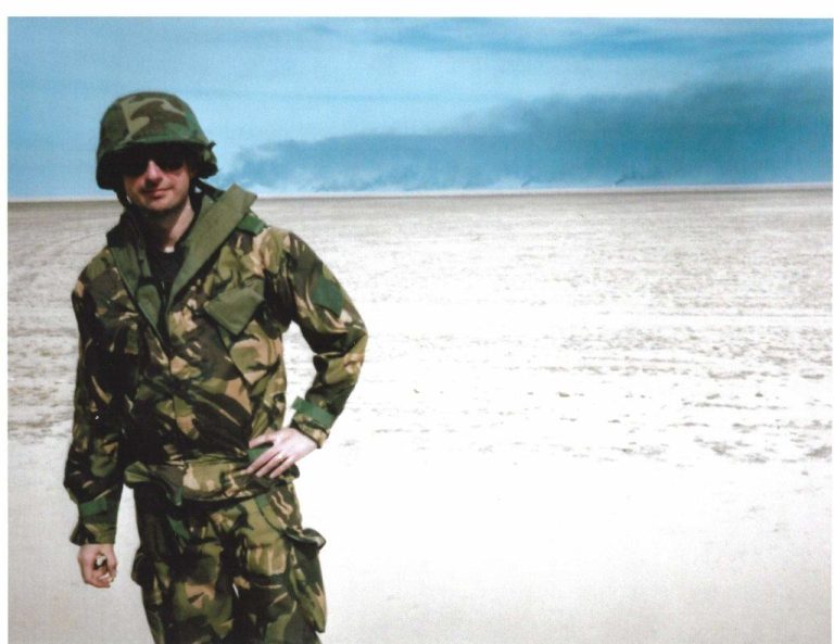FIRE IN KUWAIT: Photographer Laurent Rebors and I crept close to the Kuwait-Saudi border disguised as British combat engineers to get past Saudi checkpoints. We were the first journalists with eyewitness accounts of the scores of oil fires that burned for months. Laurent Rebors photo. 1991.